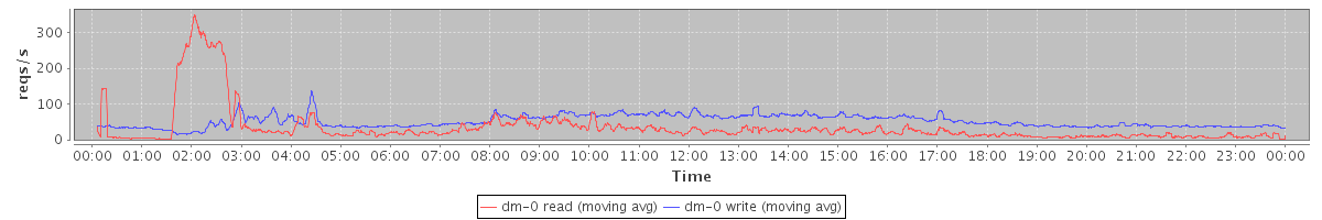avg(dm-1 read) = 916.61 avg(dm-1 write) = 80.06