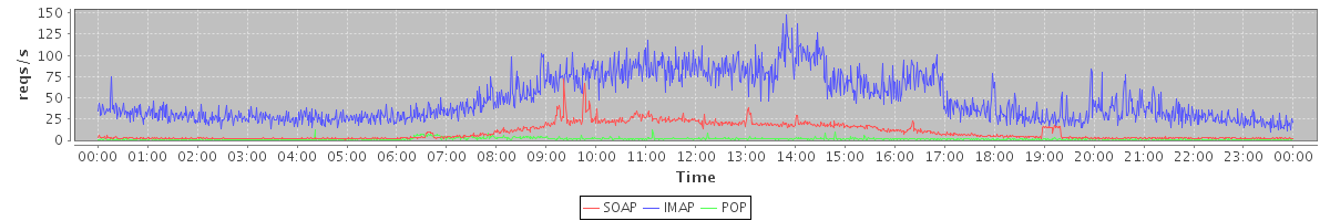 Host zm01.stanford.edu: Mailboxd: Request Rate by Client Protocol