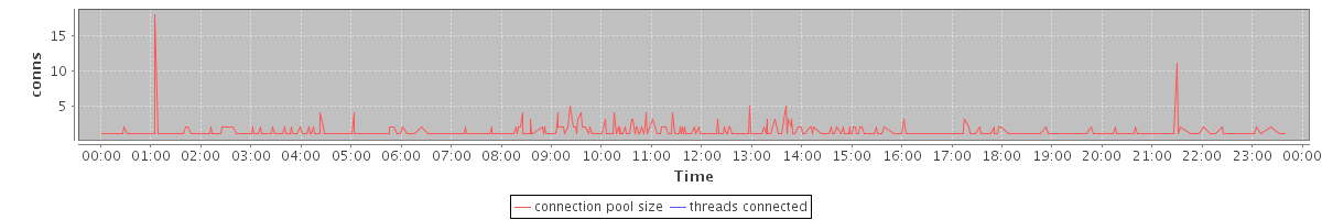 avg(connection pool size) = 0.46 avg(threads connected) = 0.00