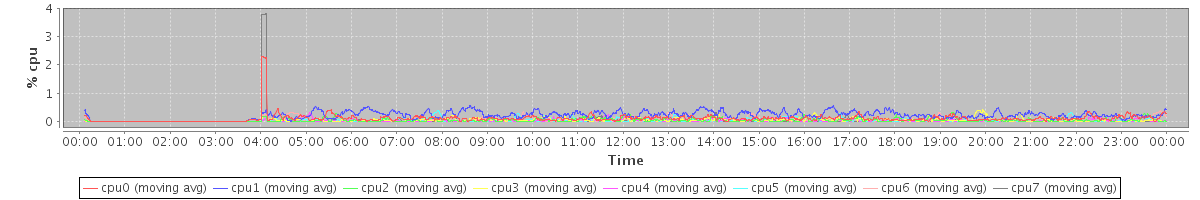 avg(cpu0) = 0.11 avg(cpu1) = 0.22 avg(cpu2) = 0.05 avg(cpu3) = 0.05 avg(cpu4) = 0.03 avg(cpu5) = 0.04 avg(cpu6) = 0.05 avg(cpu7) = 0.04