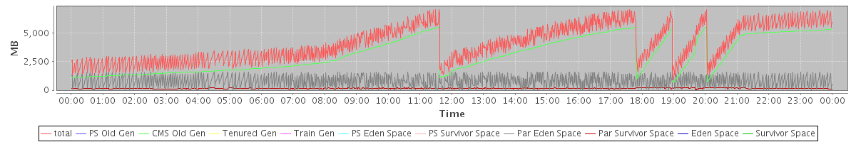 avg(total) = 4089.07 avg(PS Old Gen) = 0.00 avg(CMS Old Gen) = 3120.98 avg(Tenured Gen) = 0.00 avg(Train Gen) = 0.00 avg(PS Eden Space) = 0.00 avg(PS Survivor Space) = 0.00 avg(Par Eden Space) = 812.22 avg(Par Survivor Space) = 155.87 avg(Eden Space) = 0.00 avg(Survivor Space) = 0.00