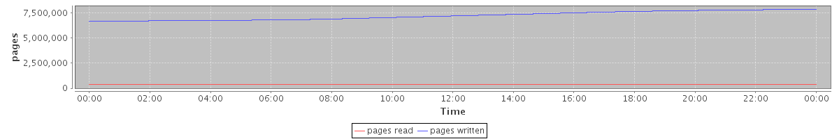 avg(pages read) = 367749.00 avg(pages written) = 7215146.14