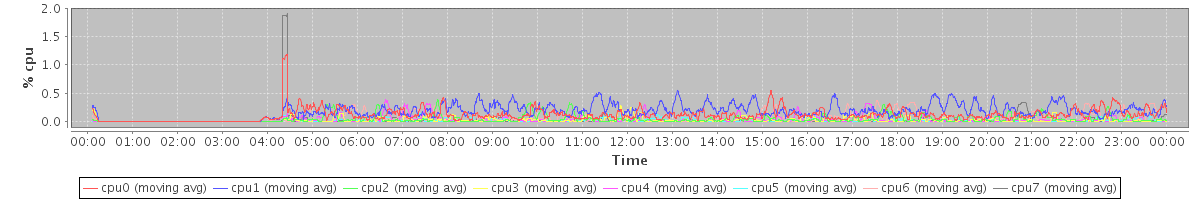 avg(cpu0) = 0.10 avg(cpu1) = 0.03 avg(cpu2) = 0.04 avg(cpu3) = 0.01 avg(cpu4) = 0.03 avg(cpu5) = 0.00 avg(cpu6) = 0.04 avg(cpu7) = 0.00