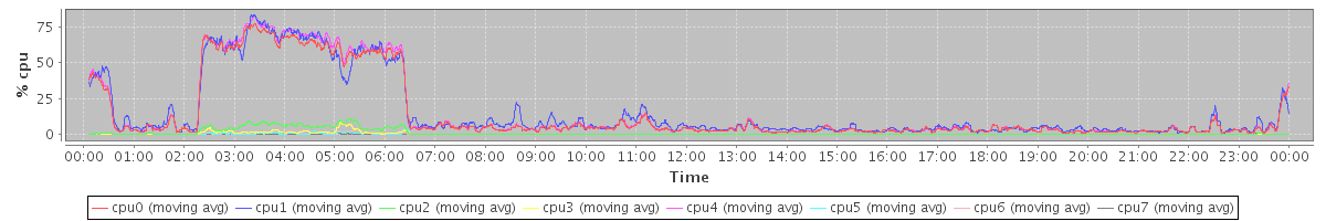 avg(cpu0) = 0.17 avg(cpu1) = 0.26 avg(cpu2) = 0.04 avg(cpu3) = 0.06 avg(cpu4) = 0.06 avg(cpu5) = 0.05 avg(cpu6) = 0.04 avg(cpu7) = 0.03