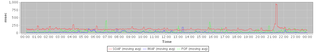 avg(IMAP) = 118.37 avg(IMAP SSL) = 579.66 avg(POP) = 0.14 avg(POP SSL) = 0.79
