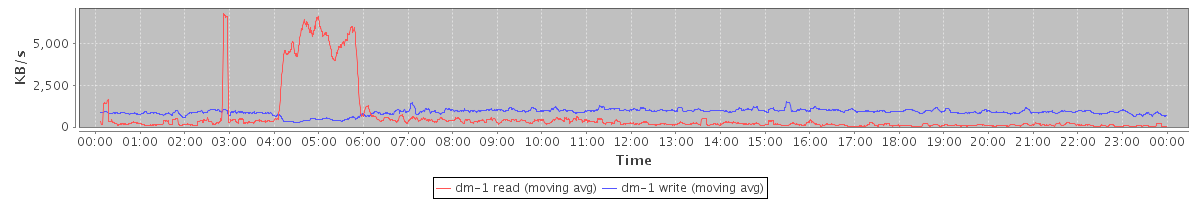 avg(dm-1 read) = 636.06 avg(dm-1 write) = 899.35