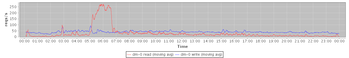 avg(dm-1 read) = 358.09 avg(dm-1 write) = 553.10