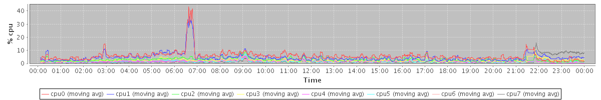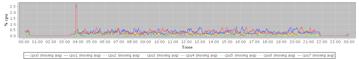 avg(cpu0) = 0.24 avg(cpu1) = 0.27 avg(cpu2) = 0.09 avg(cpu3) = 0.09 avg(cpu4) = 0.05 avg(cpu5) = 0.05 avg(cpu6) = 0.03 avg(cpu7) = 0.04
