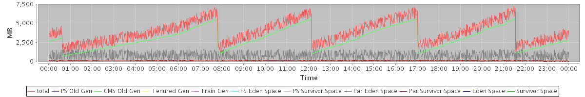 avg(total) = 3896.72 avg(PS Old Gen) = 0.00 avg(CMS Old Gen) = 2961.93 avg(Tenured Gen) = 0.00 avg(Train Gen) = 0.00 avg(PS Eden Space) = 0.00 avg(PS Survivor Space) = 0.00 avg(Par Eden Space) = 810.47 avg(Par Survivor Space) = 124.32 avg(Eden Space) = 0.00 avg(Survivor Space) = 0.00