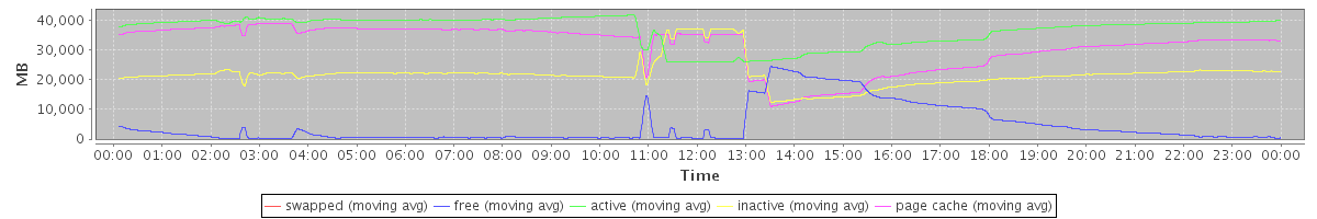 avg(swapped) = 0.02 avg(free) = 4600.19 avg(active) = 36491.99 avg(inactive) = 21841.19 avg(page cache) = 31402.34