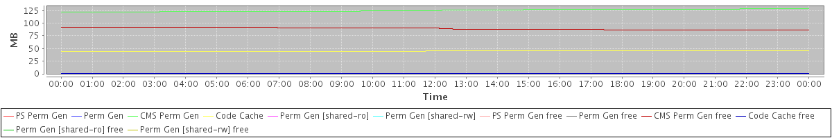 avg(PS Perm Gen) = 0.00 avg(Perm Gen) = 0.00 avg(CMS Perm Gen) = 125.29 avg(Code Cache) = 45.18 avg(Perm Gen [shared-ro]) = 0.00 avg(Perm Gen [shared-rw]) = 0.00 avg(PS Perm Gen free) = 0.00 avg(Perm Gen free) = 0.00 avg(CMS Perm Gen free) = 89.34 avg(Code Cache free) = 0.50 avg(Perm Gen [shared-ro] free) = 0.00 avg(Perm Gen [shared-rw] free) = 0.00