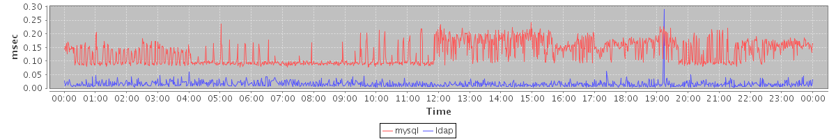 avg(mysql) = 0.13 avg(ldap) = 0.01