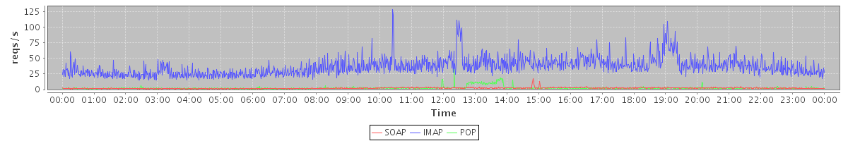 Host zm08.stanford.edu: Mailboxd: Request Rate by Client Protocol