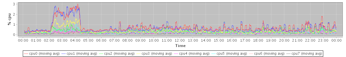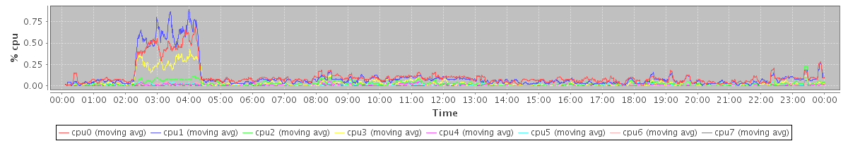 avg(cpu0) = 0.11 avg(cpu1) = 0.11 avg(cpu2) = 0.03 avg(cpu3) = 0.04 avg(cpu4) = 0.01 avg(cpu5) = 0.01 avg(cpu6) = 0.01 avg(cpu7) = 0.00