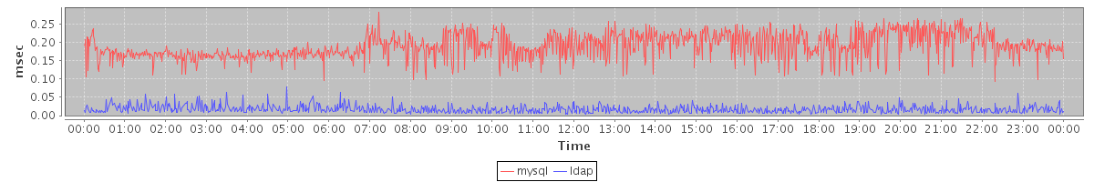 avg(mysql) = 0.19 avg(ldap) = 0.01