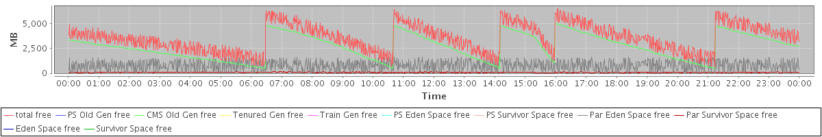 avg(total free) = 3581.26 avg(PS Old Gen free) = 0.00 avg(CMS Old Gen free) = 2703.45 avg(Tenured Gen free) = 0.00 avg(Train Gen free) = 0.00 avg(PS Eden Space free) = 0.00 avg(PS Survivor Space free) = 0.00 avg(Par Eden Space free) = 789.51 avg(Par Survivor Space free) = 88.30 avg(Eden Space free) = 0.00 avg(Survivor Space free) = 0.00