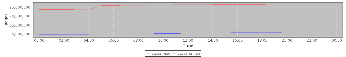 avg(pages read) = 25982613.86 avg(pages written) = 10474024.85