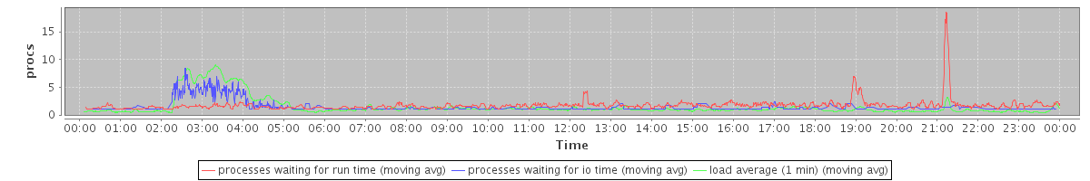avg(processes waiting for run time) = 1.12 avg(processes waiting for io time) = 0.53 avg(load average (1 min)) = 1.44