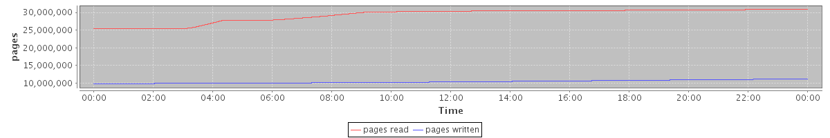 avg(pages read) = 29263660.60 avg(pages written) = 10377574.47