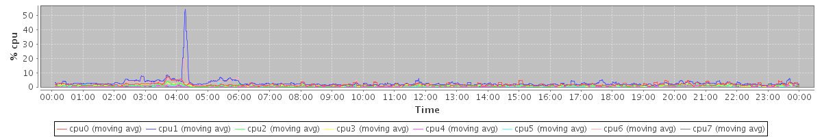 avg(cpu0) = 0.02 avg(cpu1) = 0.08 avg(cpu2) = 0.01 avg(cpu3) = 0.04 avg(cpu4) = 0.01 avg(cpu5) = 0.01 avg(cpu6) = 0.03 avg(cpu7) = 0.00