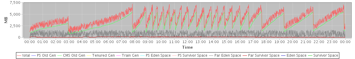 avg(total free) = 3797.35 avg(PS Old Gen free) = 0.00 avg(CMS Old Gen free) = 2895.53 avg(Tenured Gen free) = 0.00 avg(Train Gen free) = 0.00 avg(PS Eden Space free) = 0.00 avg(PS Survivor Space free) = 0.00 avg(Par Eden Space free) = 798.98 avg(Par Survivor Space free) = 102.85 avg(Eden Space free) = 0.00 avg(Survivor Space free) = 0.00