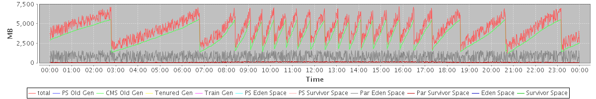 avg(total free) = 3466.06 avg(PS Old Gen free) = 0.00 avg(CMS Old Gen free) = 2536.40 avg(Tenured Gen free) = 0.00 avg(Train Gen free) = 0.00 avg(PS Eden Space free) = 0.00 avg(PS Survivor Space free) = 0.00 avg(Par Eden Space free) = 807.28 avg(Par Survivor Space free) = 122.37 avg(Eden Space free) = 0.00 avg(Survivor Space free) = 0.00