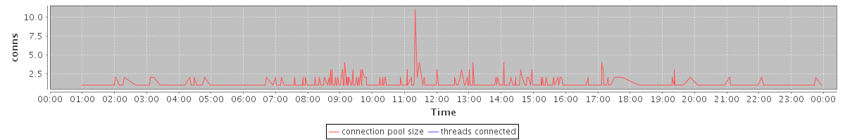 avg(connection pool size) = 0.35 avg(threads connected) = 0.00
