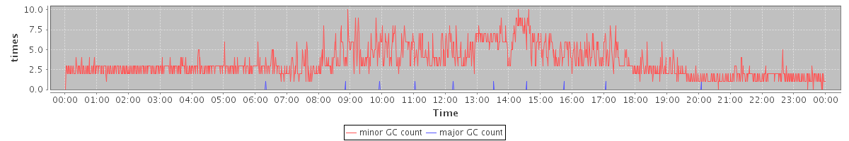 avg(minor GC count) = 3.42 avg(major GC count) = 0.01