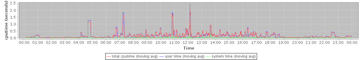 avg(total cputime) = 0.12 avg(user time) = 0.12 avg(system time) = 0.01