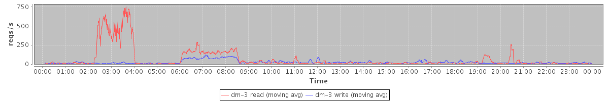avg(dm-3 read) = 1100.54 avg(dm-3 write) = 224.56