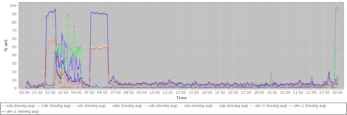 avg(sda) = 8.04 avg(sdb) = 4.42 avg(sdc) = 4.66 avg(sdm) = 8.11 avg(sdn) = 4.42 avg(sdo) = 4.66 avg(sdp) = 0.79 avg(dm-0) = 5.55 avg(dm-1) = 1.16 avg(dm-2) = 13.81