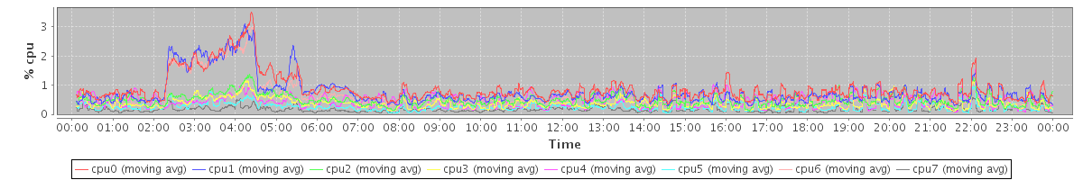 avg(cpu0) = 0.20 avg(cpu1) = 0.21 avg(cpu2) = 0.07 avg(cpu3) = 0.06 avg(cpu4) = 0.04 avg(cpu5) = 0.03 avg(cpu6) = 0.04 avg(cpu7) = 0.02