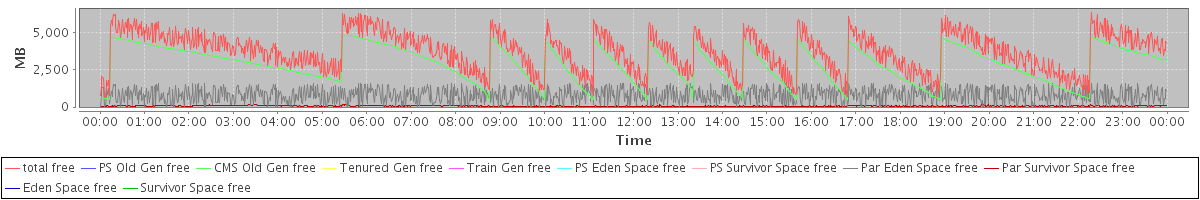 avg(total free) = 3741.80 avg(PS Old Gen free) = 0.00 avg(CMS Old Gen free) = 2871.41 avg(Tenured Gen free) = 0.00 avg(Train Gen free) = 0.00 avg(PS Eden Space free) = 0.00 avg(PS Survivor Space free) = 0.00 avg(Par Eden Space free) = 803.46 avg(Par Survivor Space free) = 66.93 avg(Eden Space free) = 0.00 avg(Survivor Space free) = 0.00