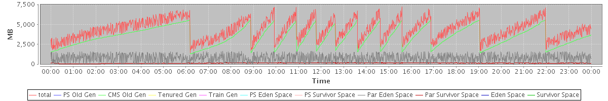 avg(total free) = 3467.98 avg(PS Old Gen free) = 0.00 avg(CMS Old Gen free) = 2587.47 avg(Tenured Gen free) = 0.00 avg(Train Gen free) = 0.00 avg(PS Eden Space free) = 0.00 avg(PS Survivor Space free) = 0.00 avg(Par Eden Space free) = 805.07 avg(Par Survivor Space free) = 75.45 avg(Eden Space free) = 0.00 avg(Survivor Space free) = 0.00