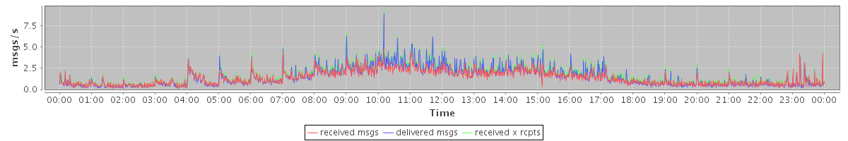 avg(received msgs) = 1.37 avg(delivered msgs) = 1.44 avg(received x rcpts) = 1.64