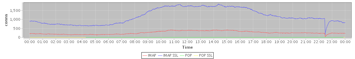 avg(IMAP) = 266.08 avg(IMAP SSL) = 1184.81 avg(POP) = 0.09 avg(POP SSL) = 2.16