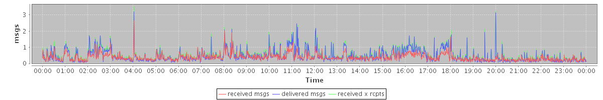 avg(received msgs) = 0.38 avg(delivered msgs) = 0.45 avg(received x rcpts) = 0.52