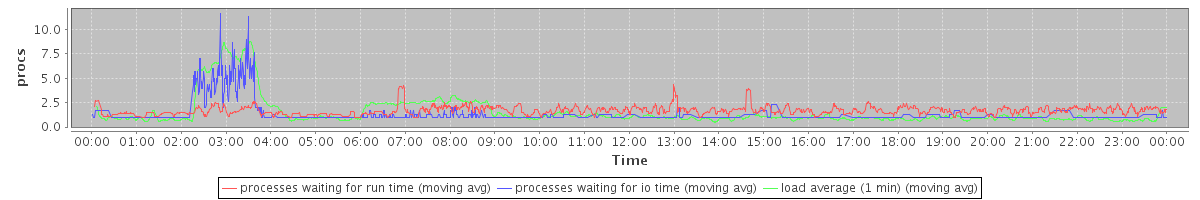 avg(processes waiting for run time) = 1.04 avg(processes waiting for io time) = 0.55 avg(load average (1 min)) = 1.52