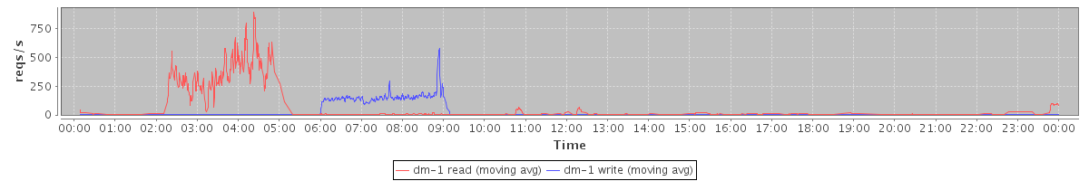 avg(dm-1 read) = 1699.05 avg(dm-1 write) = 656.85