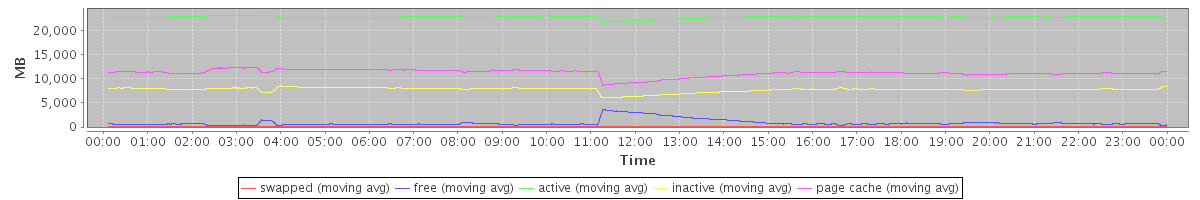 avg(swapped) = 10.09 avg(free) = 863.13 avg(active) = 22760.11 avg(inactive) = 7746.60 avg(page cache) = 11212.72