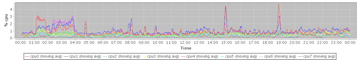 avg(cpu0) = 0.34 avg(cpu1) = 0.28 avg(cpu2) = 0.10 avg(cpu3) = 0.08 avg(cpu4) = 0.11 avg(cpu5) = 0.04 avg(cpu6) = 0.05 avg(cpu7) = 0.04