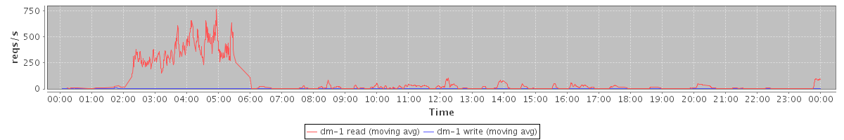 avg(dm-1 read) = 50.84 avg(dm-1 write) = 0.08