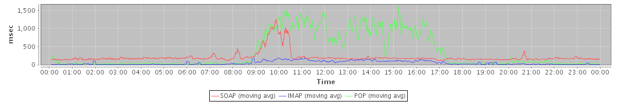 Host zm05.stanford.edu: Mailboxd: Response Time by Client Protocol