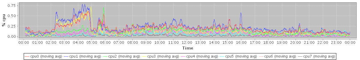 avg(cpu0) = 0.23 avg(cpu1) = 0.21 avg(cpu2) = 0.09 avg(cpu3) = 0.08 avg(cpu4) = 0.06 avg(cpu5) = 0.05 avg(cpu6) = 0.05 avg(cpu7) = 0.04