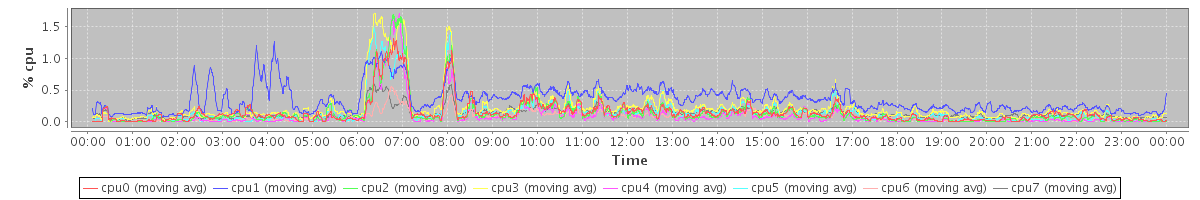 avg(cpu0) = 0.79 avg(cpu1) = 13.08 avg(cpu2) = 0.24 avg(cpu3) = 0.54 avg(cpu4) = 0.14 avg(cpu5) = 0.32 avg(cpu6) = 0.10 avg(cpu7) = 0.21
