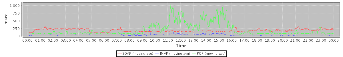 Host zm01.stanford.edu: Mailboxd: Response Time by Client Protocol