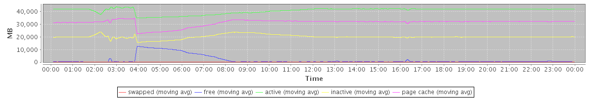 avg(swapped) = 3.46 avg(free) = 1836.93 avg(active) = 40800.51 avg(inactive) = 20150.20 avg(page cache) = 31416.48
