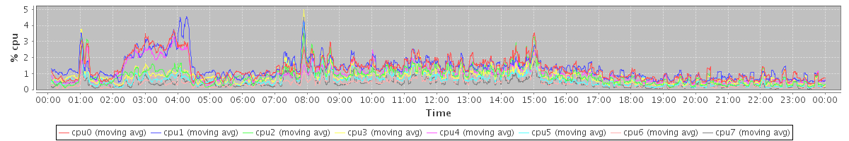 avg(cpu0) = 0.17 avg(cpu1) = 0.22 avg(cpu2) = 0.11 avg(cpu3) = 0.11 avg(cpu4) = 0.12 avg(cpu5) = 0.08 avg(cpu6) = 0.04 avg(cpu7) = 0.05