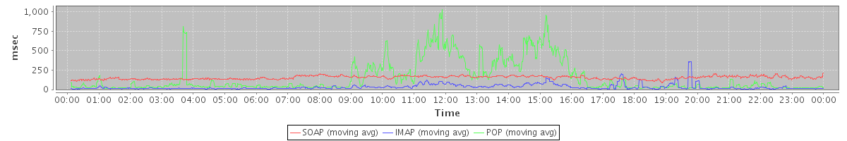 Host zm04.stanford.edu: Mailboxd: Response Time by Client Protocol
