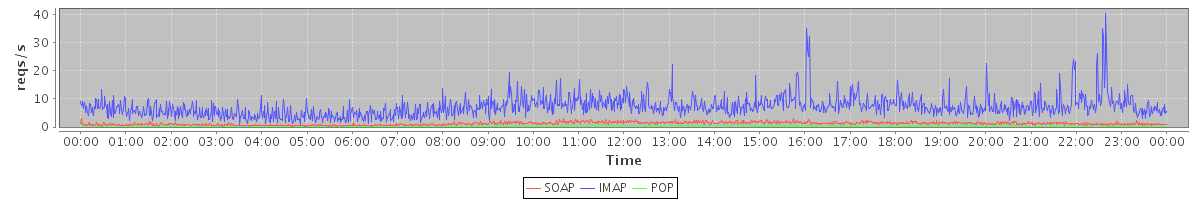 avg(IMAP) = 87.73 avg(IMAP SSL) = 238.24 avg(POP) = 0.00 avg(POP SSL) = 0.11 avg(SOAP sessions) = 89.25